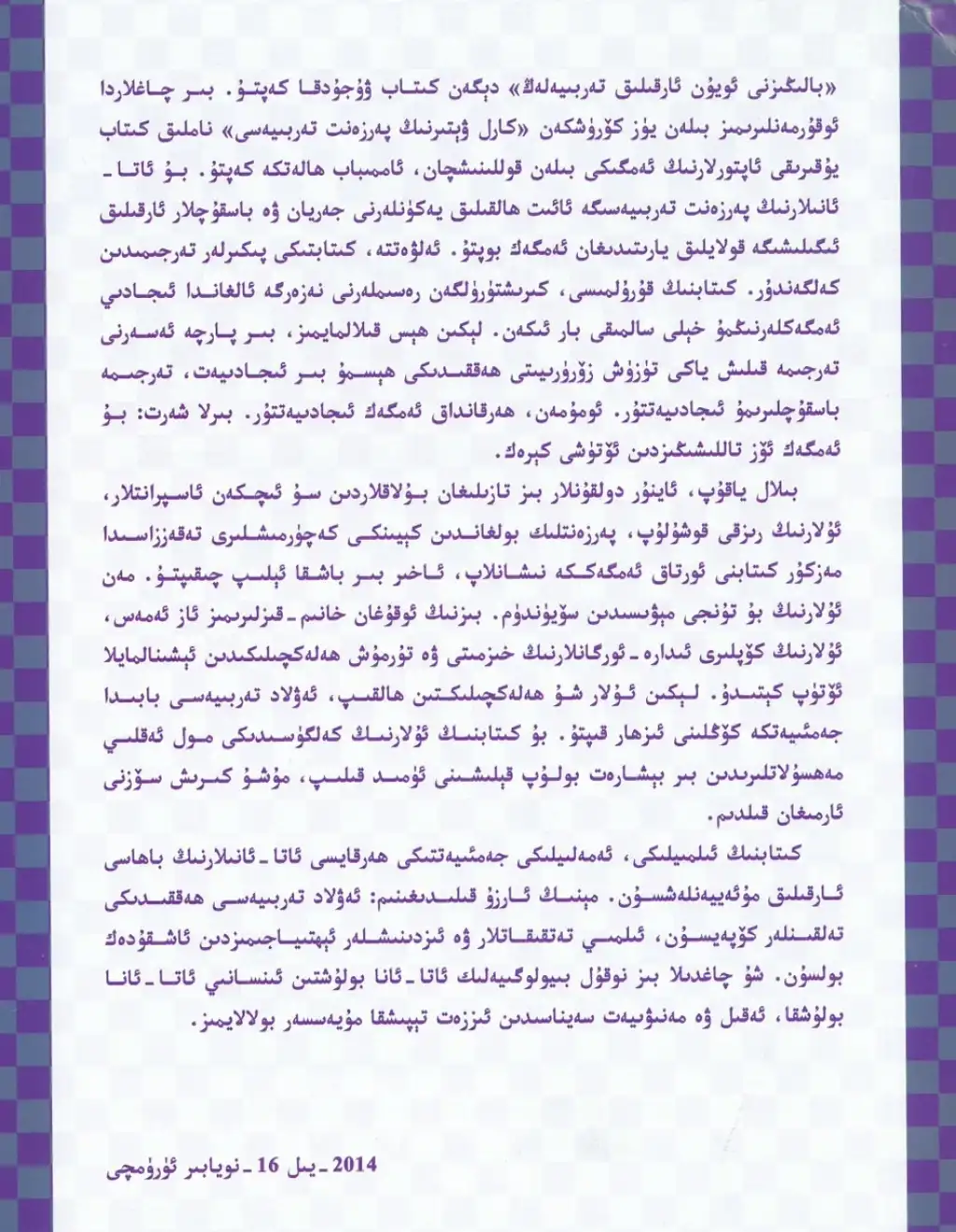 ئانا تەربىيەسى بالا ئۈچۈن ئىنتايىن مۇھىم. تارىختىكى مەشھۇر كىشىلەرنىڭ بالا تەربىيەلەشكە ماھىر ئانىلىرى بولغان. شۇڭا پەرزەنت تەربىيەسىنى ئانىسىنى تەربىيەلەشتىن باشلىدىم.